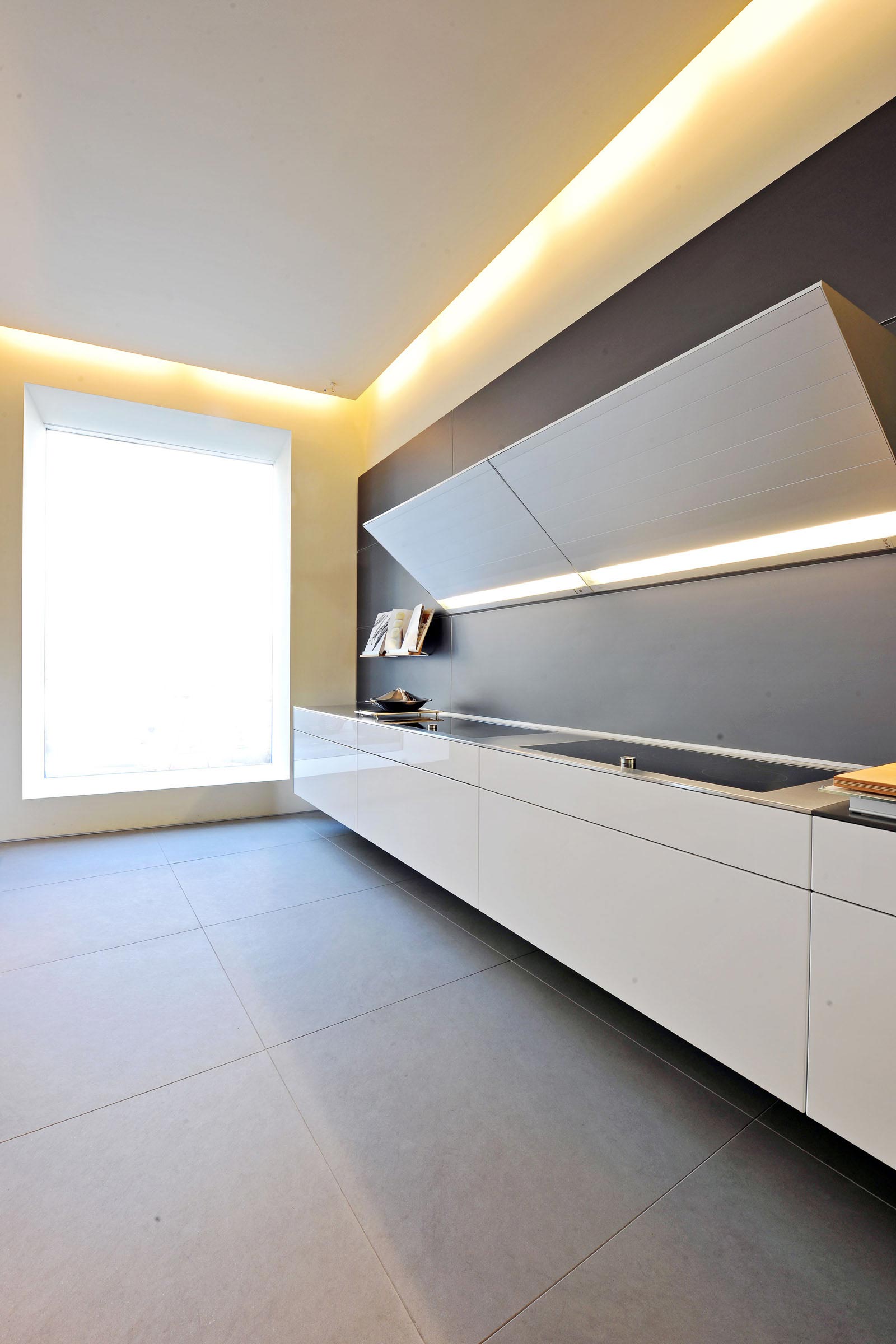 The minimalism of John Pawson enters the Bulthaup showroom in Milan right from the main entrance, and from there radiates over the flooring – in Pietra Forte Fiorentina – running along the grouting lines between the slabs laid on the floor. Within the base latticework, the essential furniture and the steps of the staircase emerge, and then the tiling in the bathroom. The desk facing the entrance seems to extrude from the modules of the flooring; the staircase sees the material carved with precision. The geometry of the vertical connection is strictly controlled; the only variable appears to be the natural and artificial light component, capable of enhancing the clean shapes and enriching the range of greys. Sandstone also features laid vertically, in the bathrooms and the interiors of a Hamman, showcasing the happy cohabitation of stone and natural materials such as metal, water and wood.